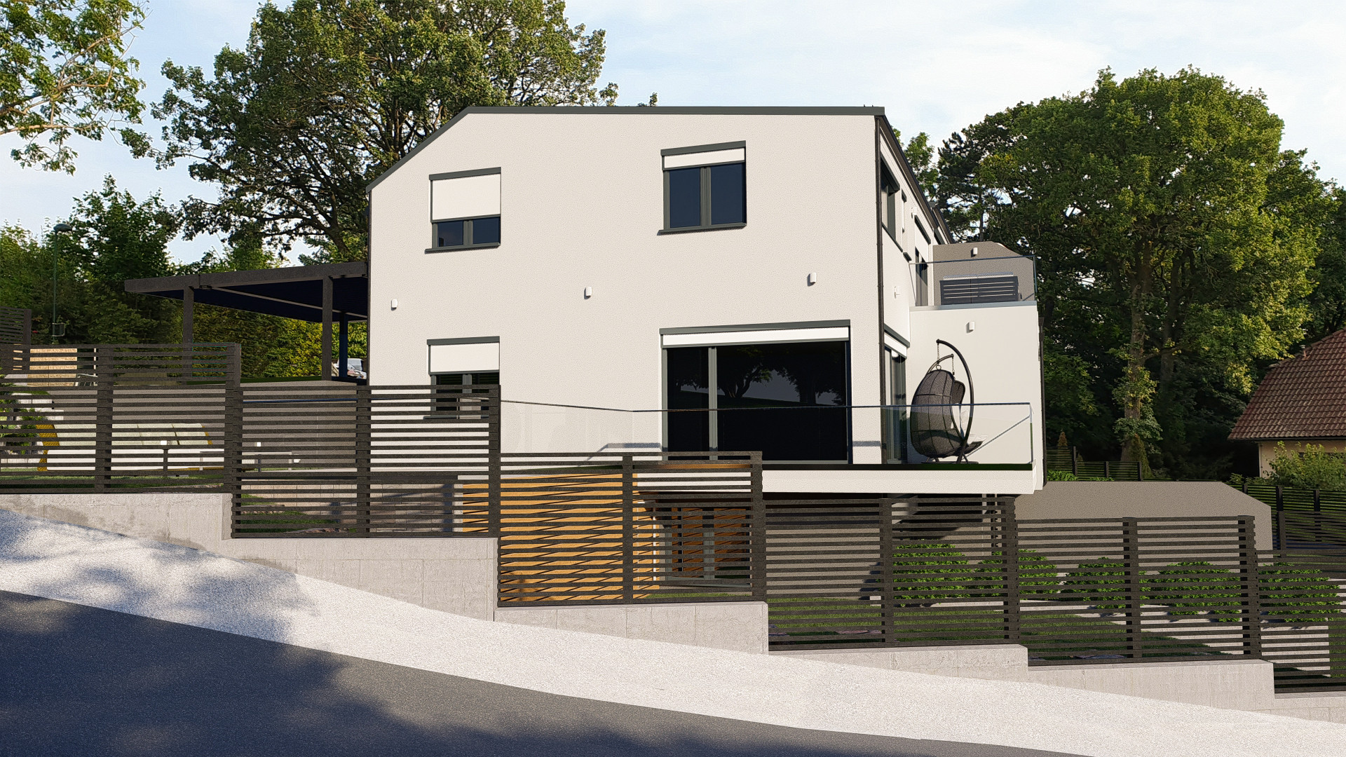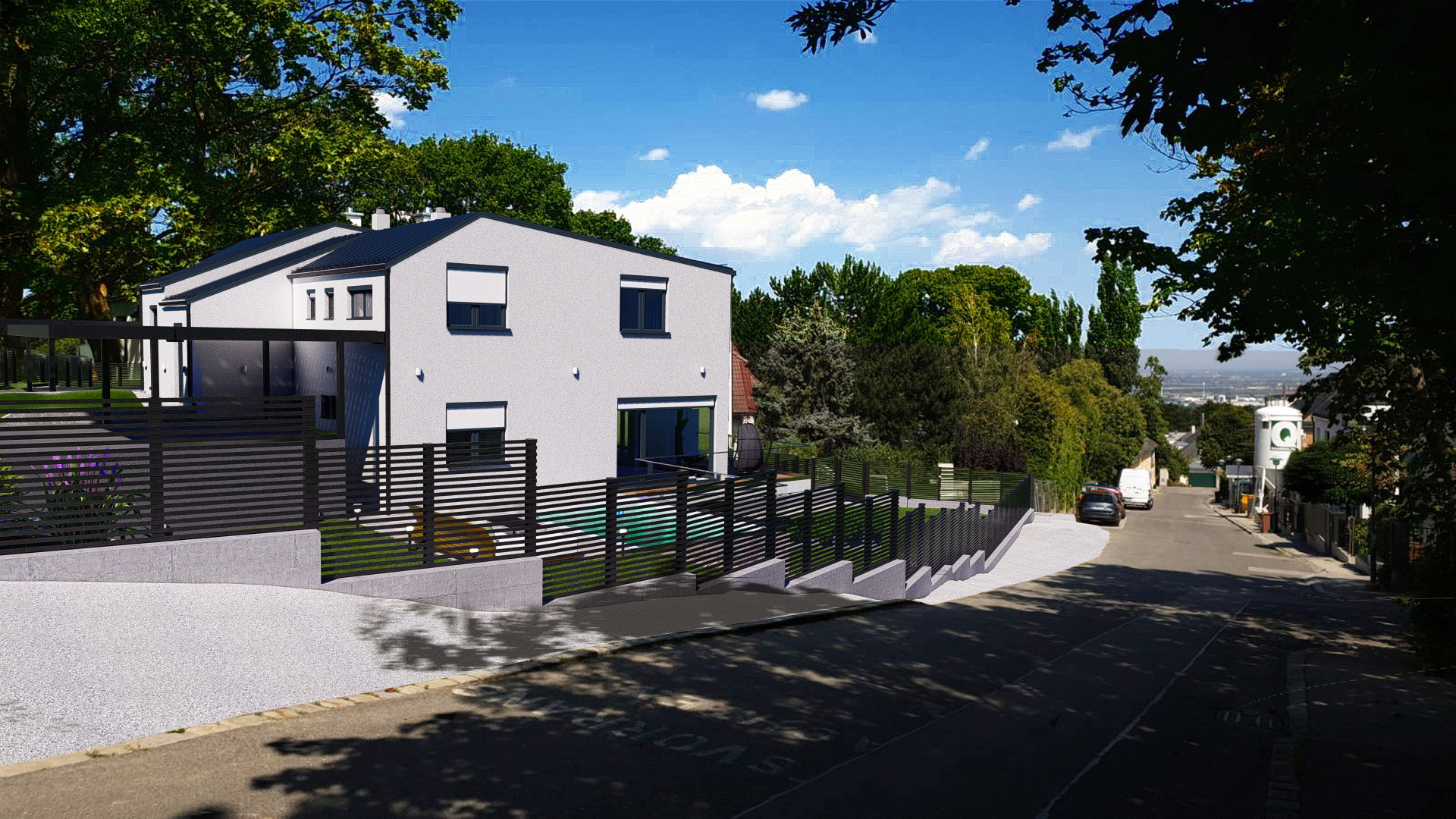 Located on a picturesque hillside above Vienna, this project presents an architectural concept for modular eco-friendly townhouses. Designed in collaboration with a local construction company, the development emphasizes sustainability, functionality, and modern aesthetics, catering to the growing demand for environmentally conscious living spaces.