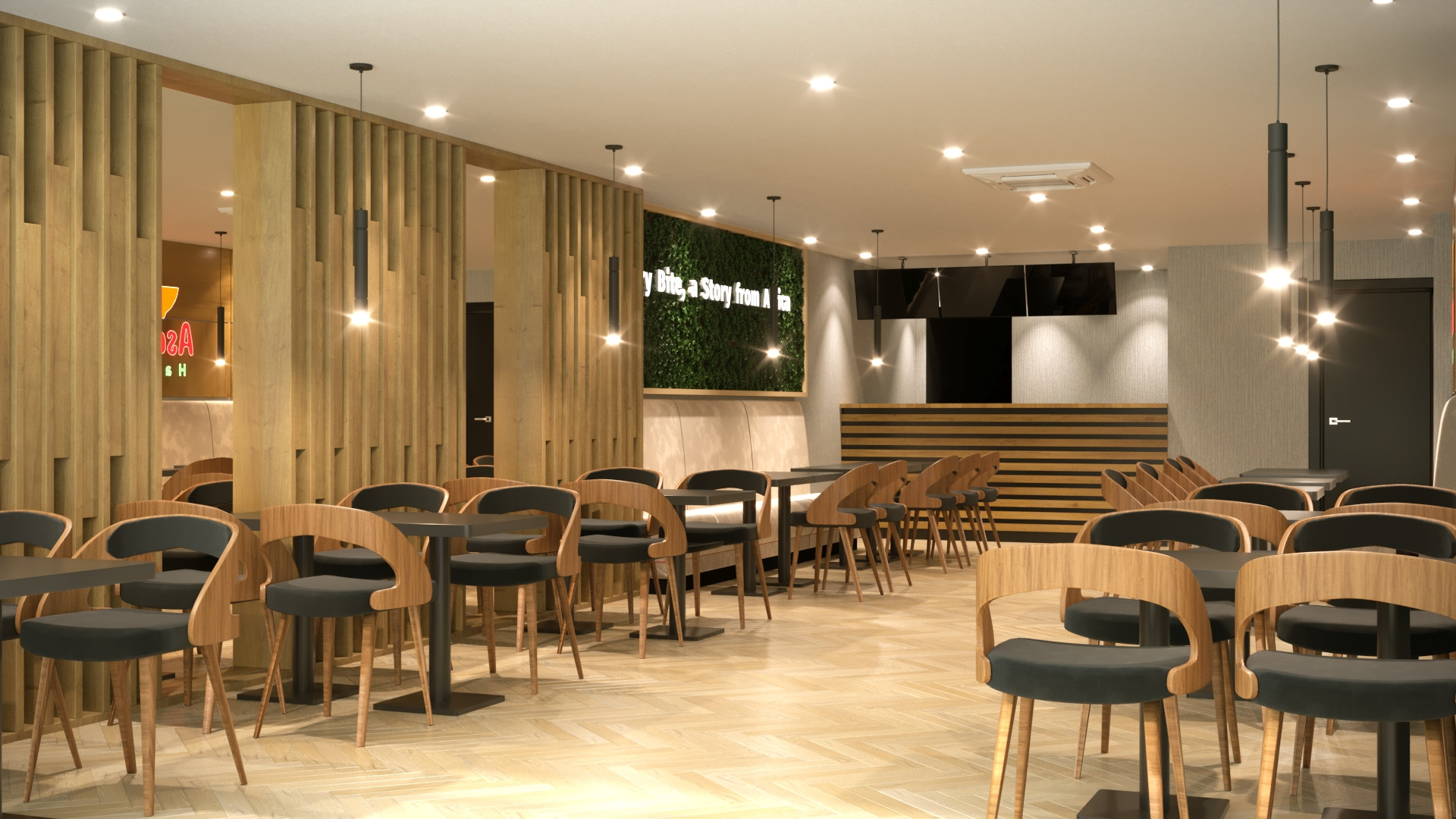 Efficient fast food and takeaway design focused on speed of service, compact layouts and practical build execution. Optimised for high-traffic environments in Birmingham, Manchester and across the UK.